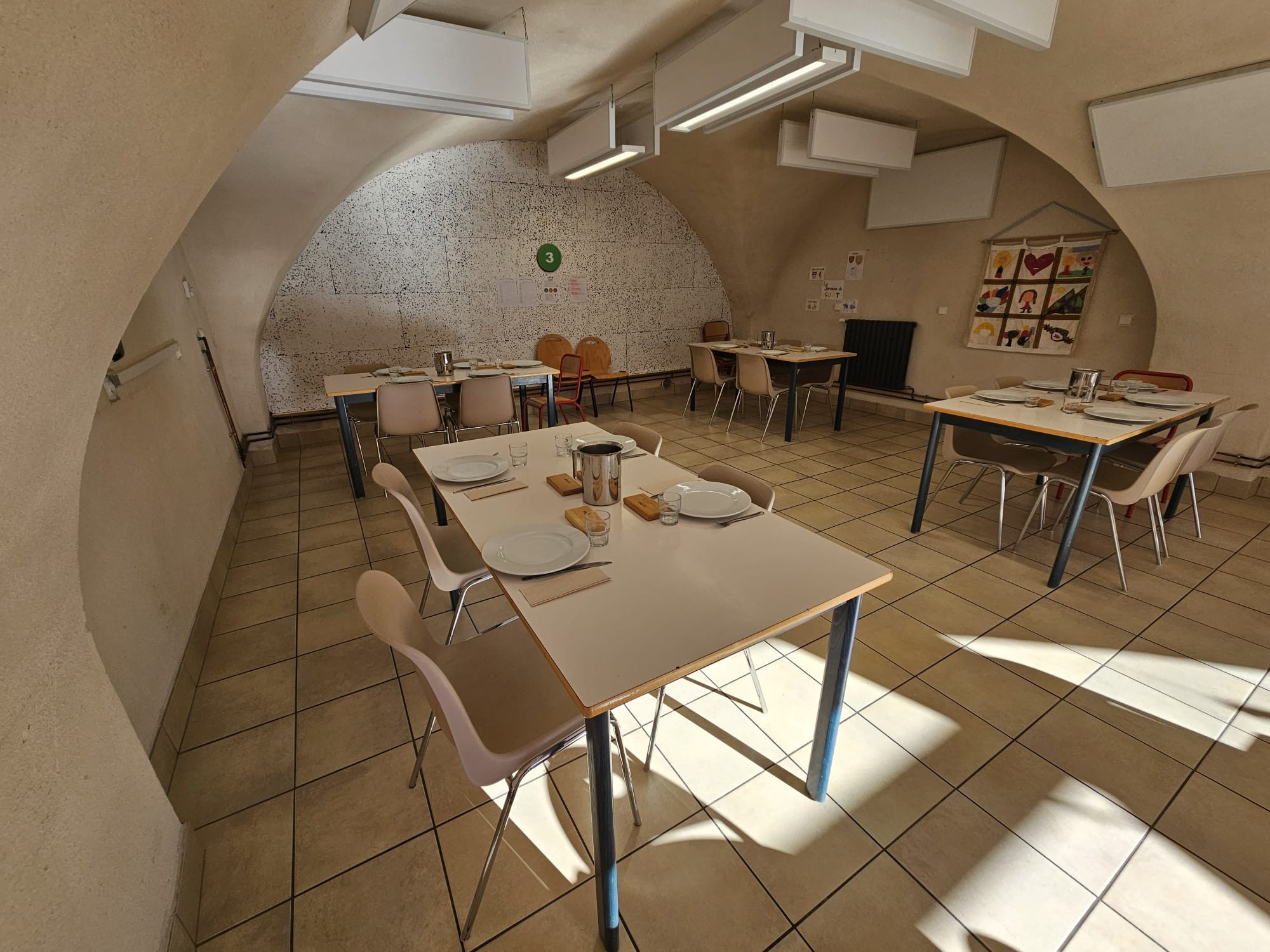 Les enfants déjeunent ensemble dans une ambiance conviviale, sous la surveillance d’agents municipaux attentifs.
